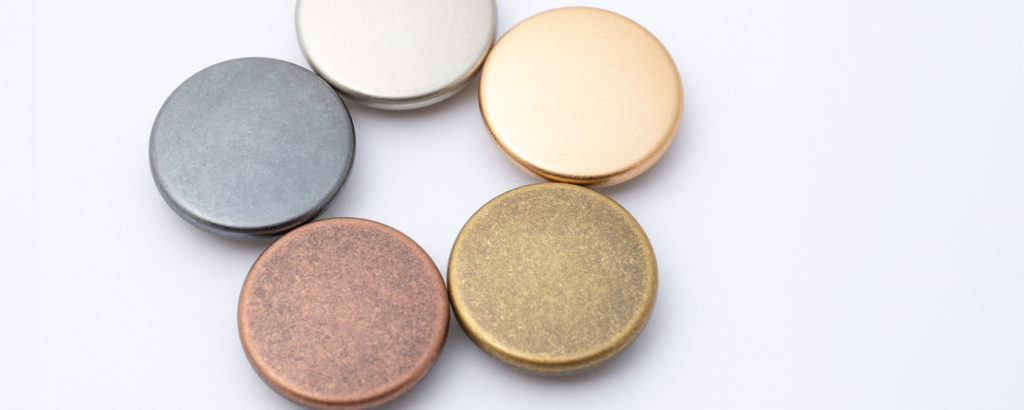 Hisanaga Seisakusho has recently expanded its in-house production capabilities to include plating operations, in addition to snap fastener mold making and press machining. Plating surfaces is a necessary process in order to add decorative colors as well as provide anti-corrosive and anti-friction properties. Surfaces are treated based on the application and types we provide include electroplating, chemical conversion treatments and coating. Among others tin-copper alloy electroplating is provided to safeguard against allergies prone to the more popular nickel-type snap fasteners, but traditionally a large amount of potassium cyanide or sodium cyanide (both hazardous chemicals) has been used in the manufacturing process.
